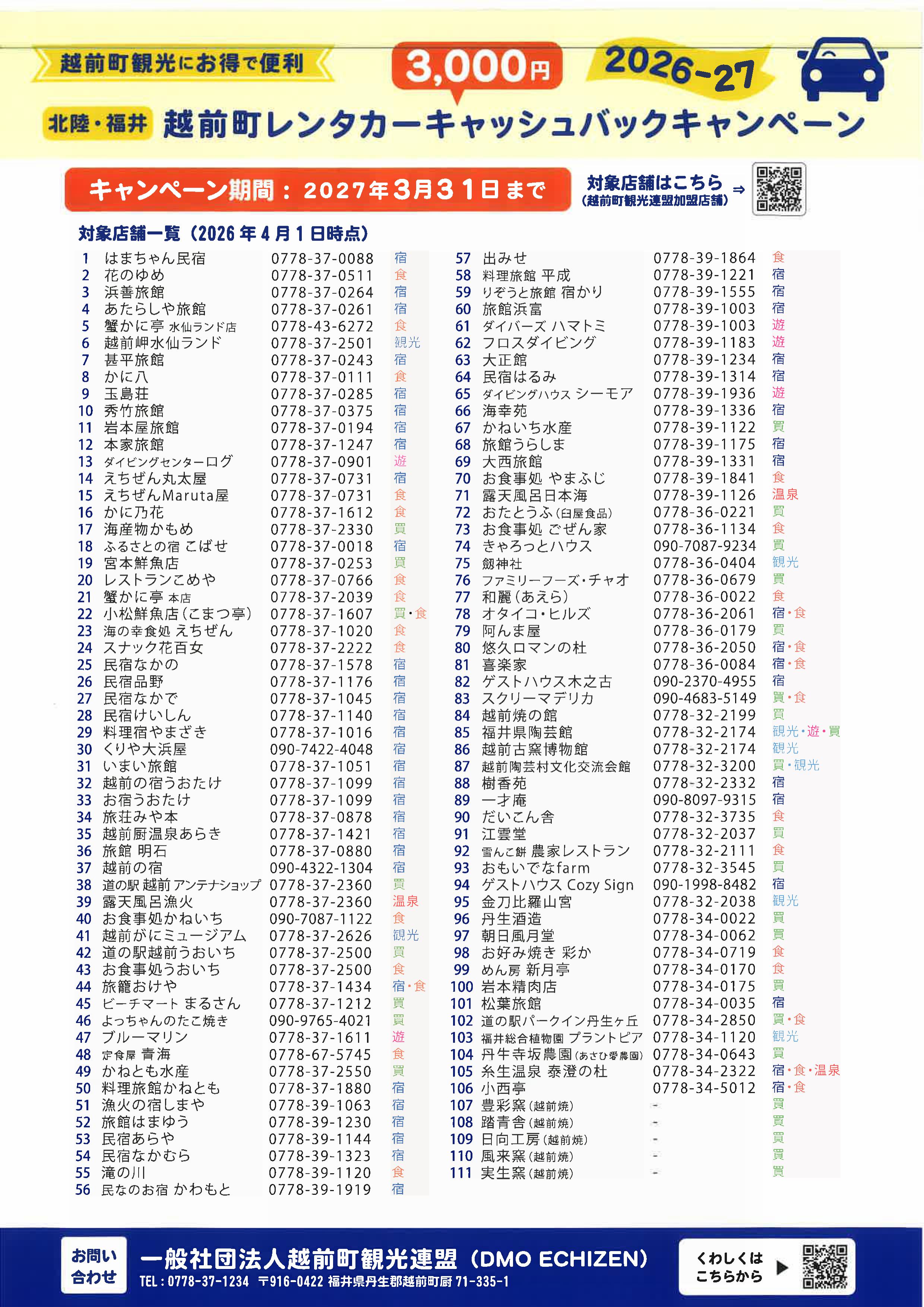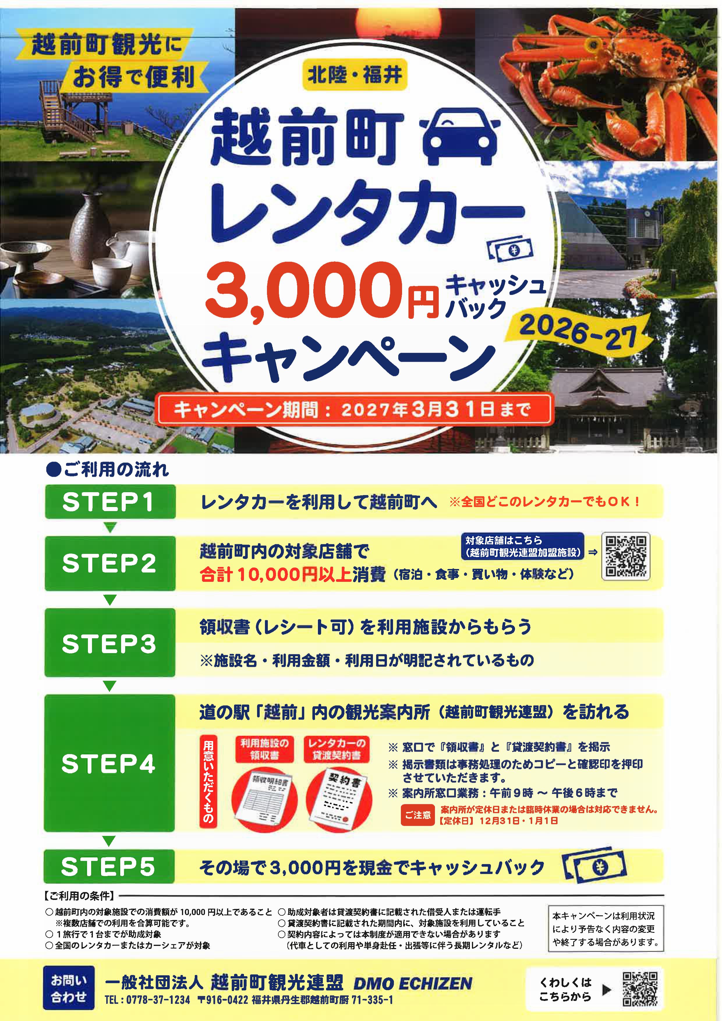 越前町レンタカーキャッシュバックキャンペーン【2026年度】